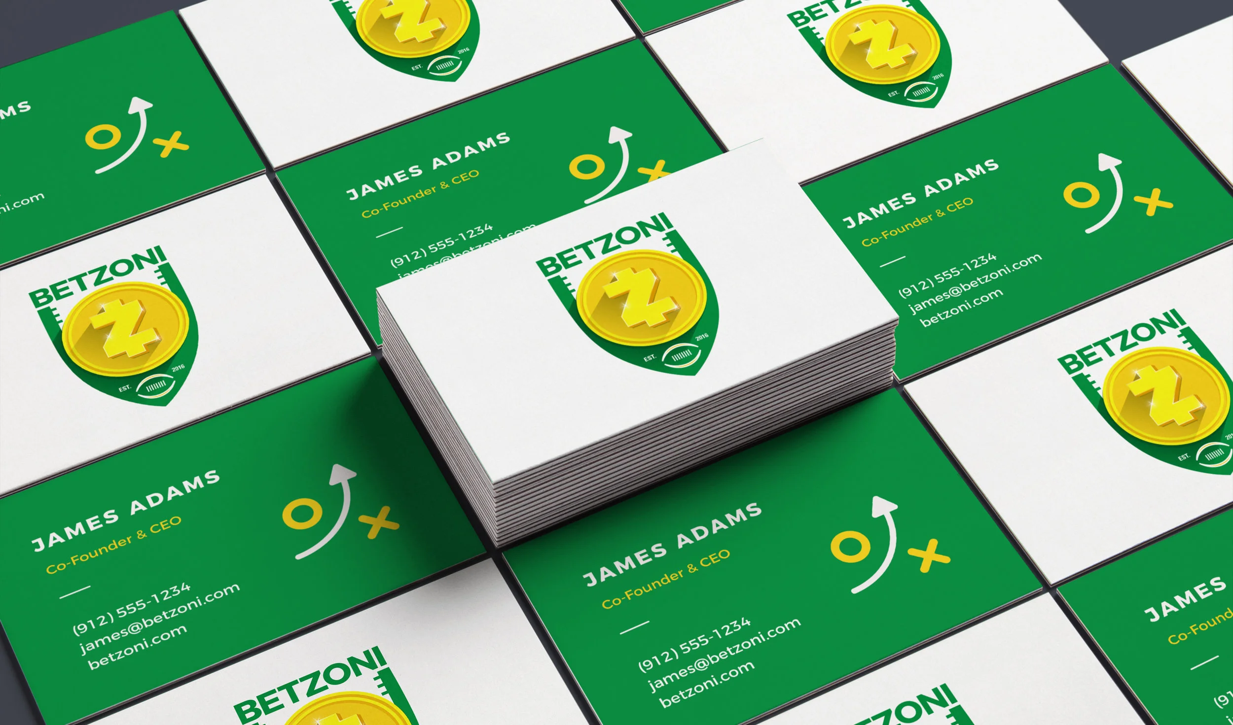 Using recognizable football symbols, bright colors and engaging icons, I developed Betzoni's complete brand identity from top to bottom.
